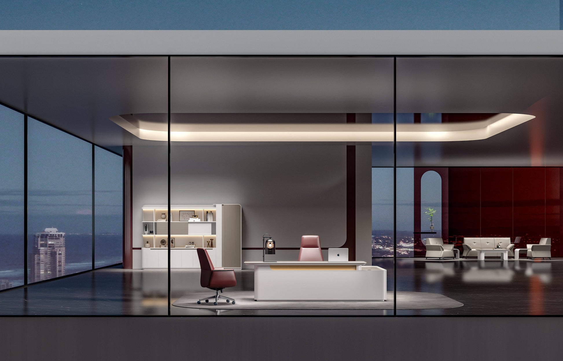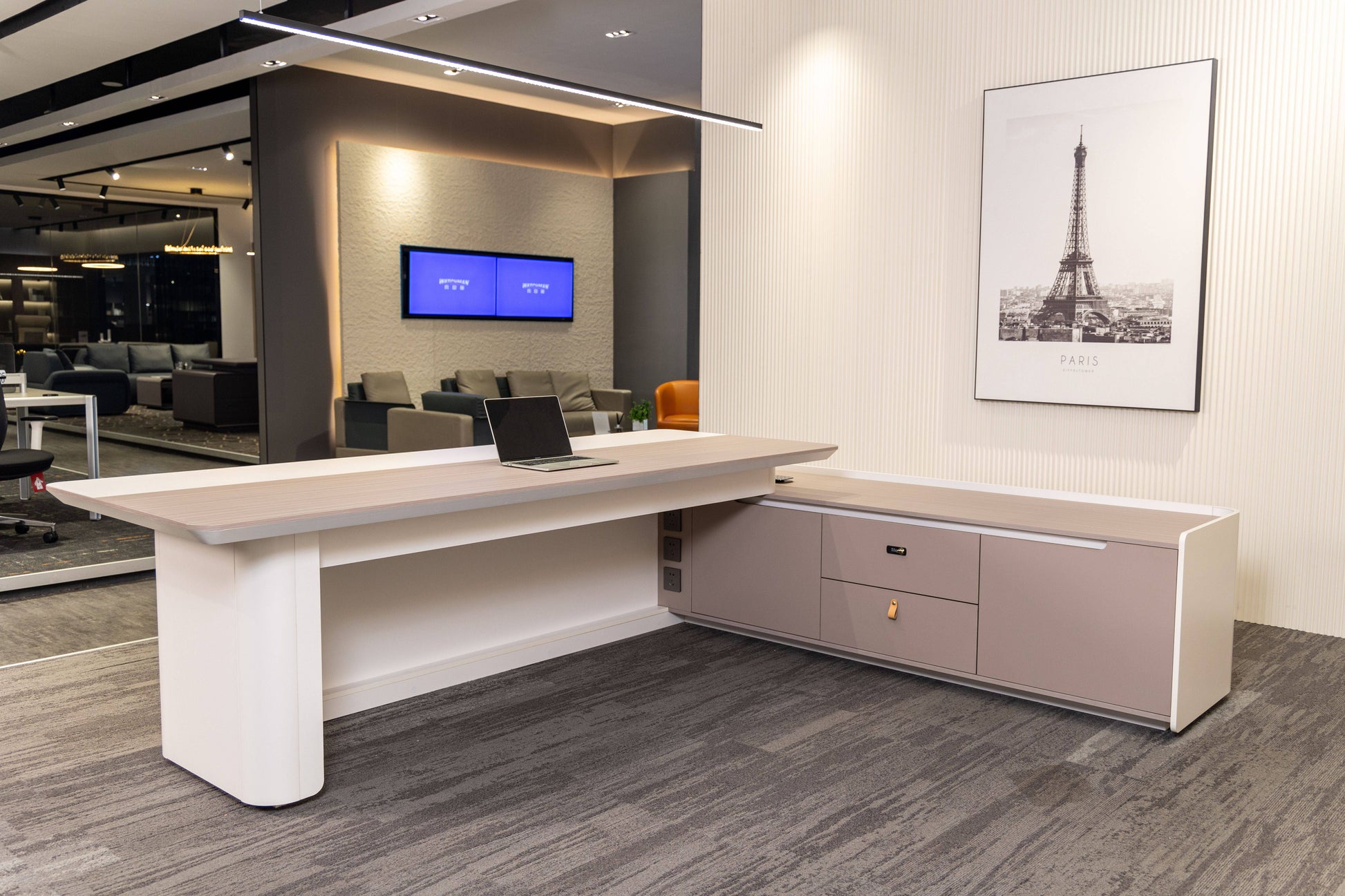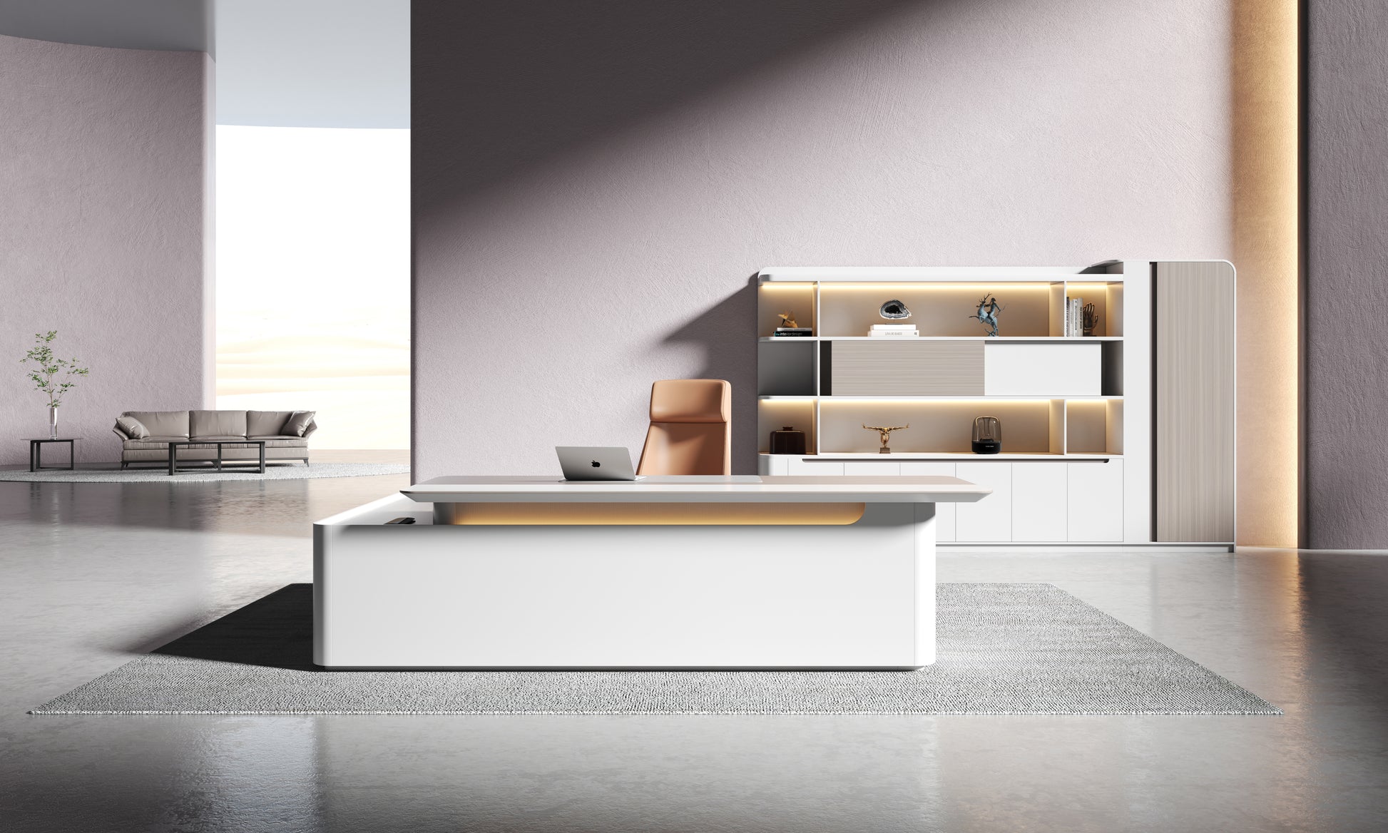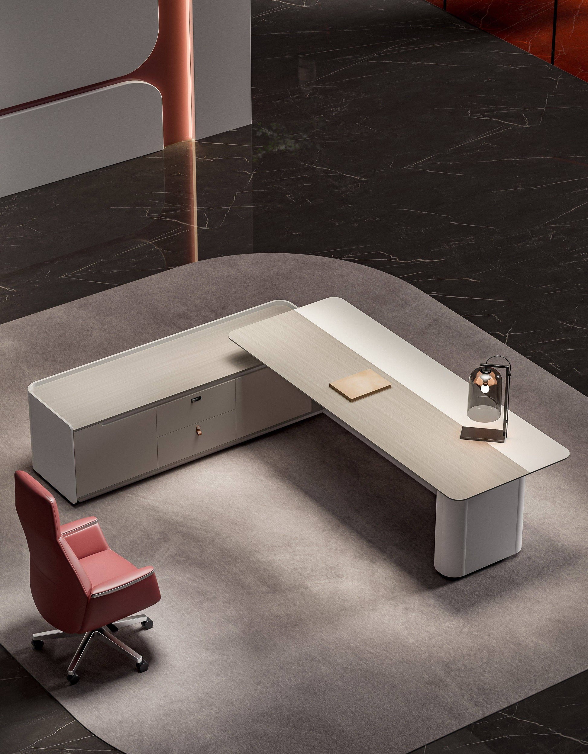 Engineered with both aesthetics and utility in mind, this desk includes premium surfaces, seamless storage integration, and built-in power access — all wrapped in a soft, sculpted silhouette.