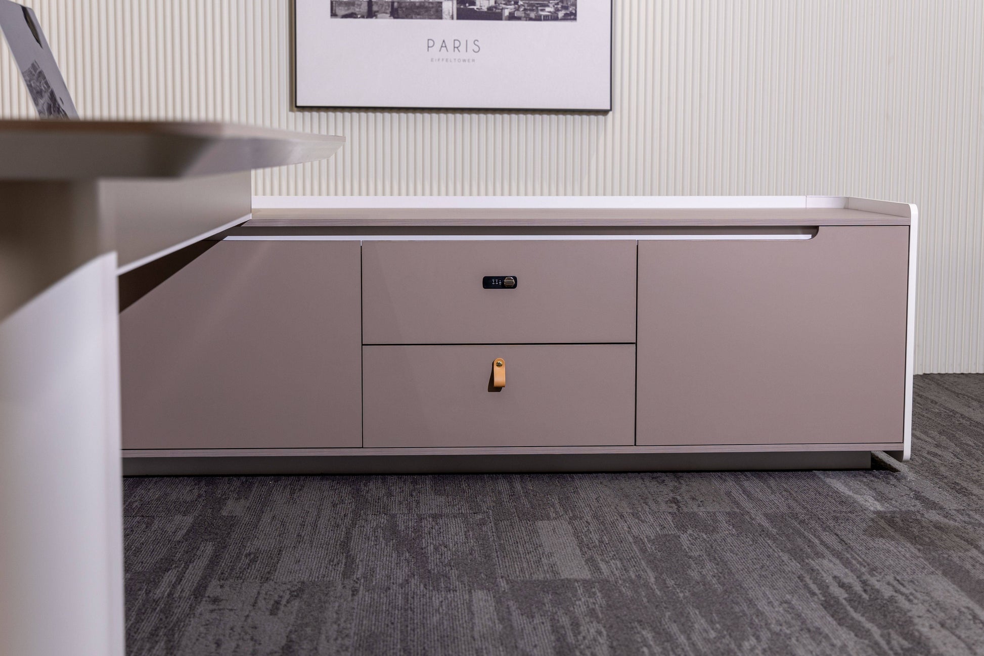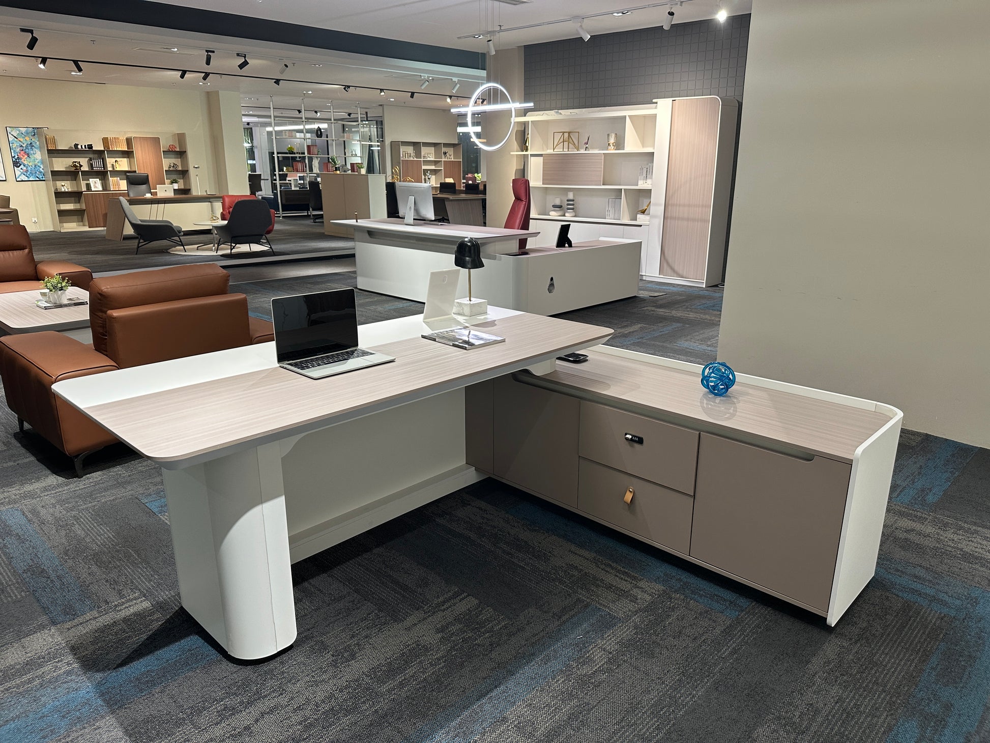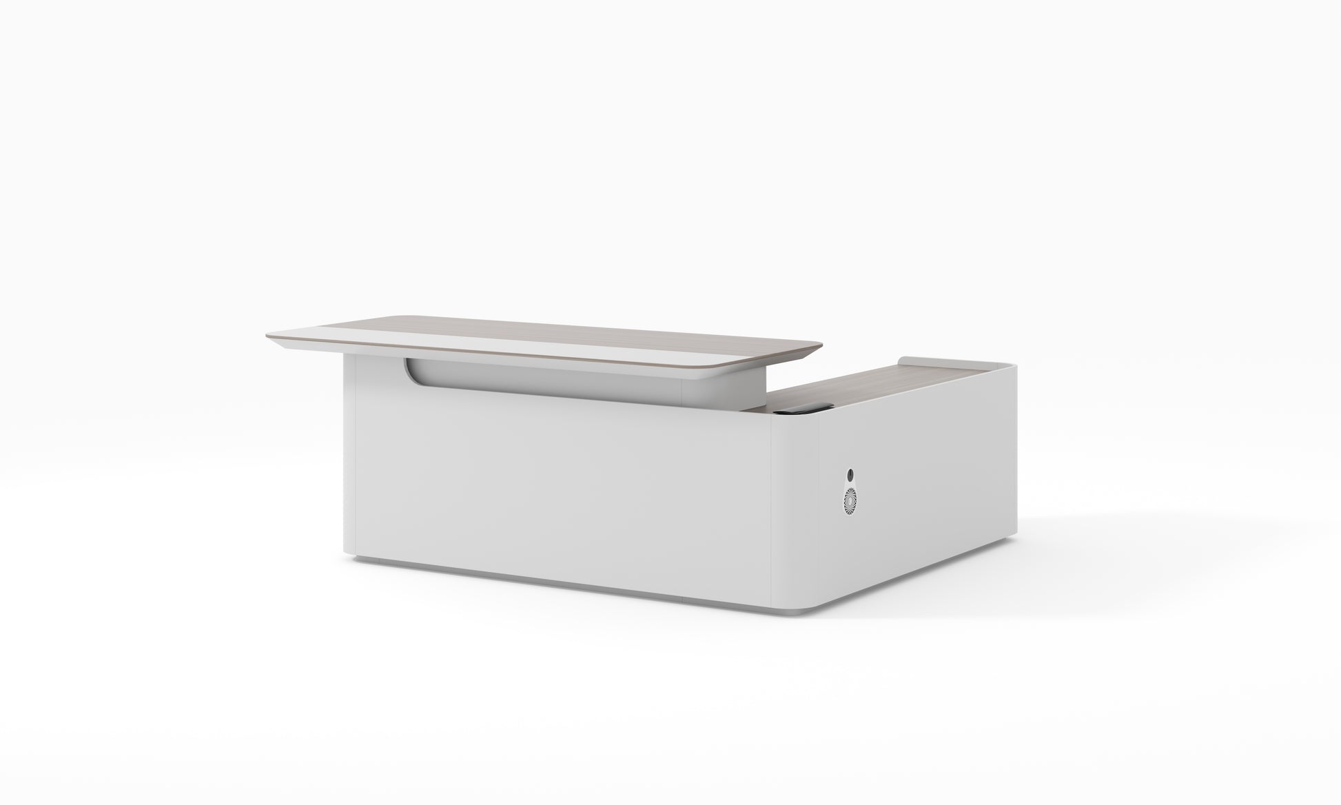 Engineered with both aesthetics and utility in mind, this desk includes premium surfaces, seamless storage integration, and built-in power access — all wrapped in a soft, sculpted silhouette.