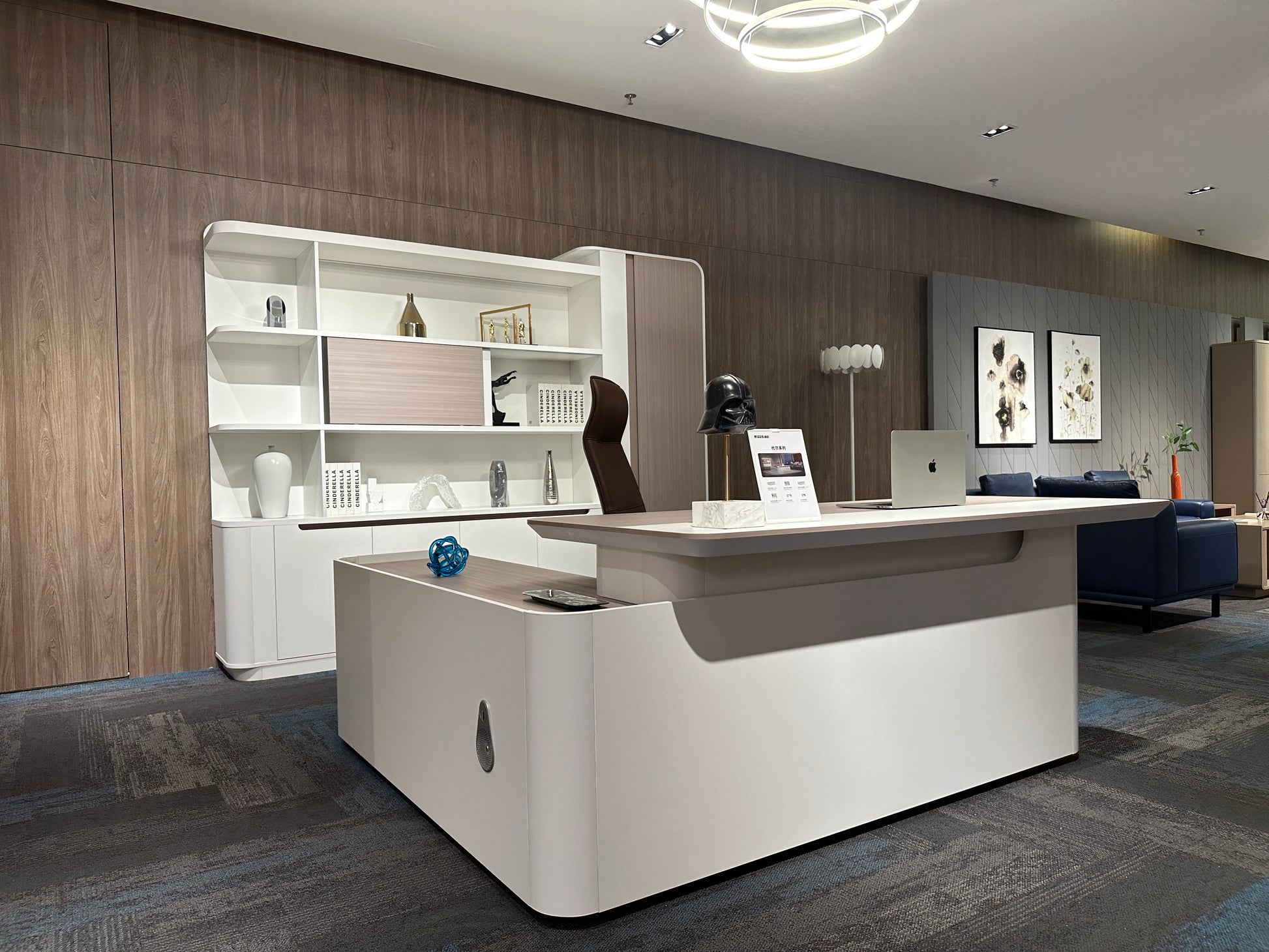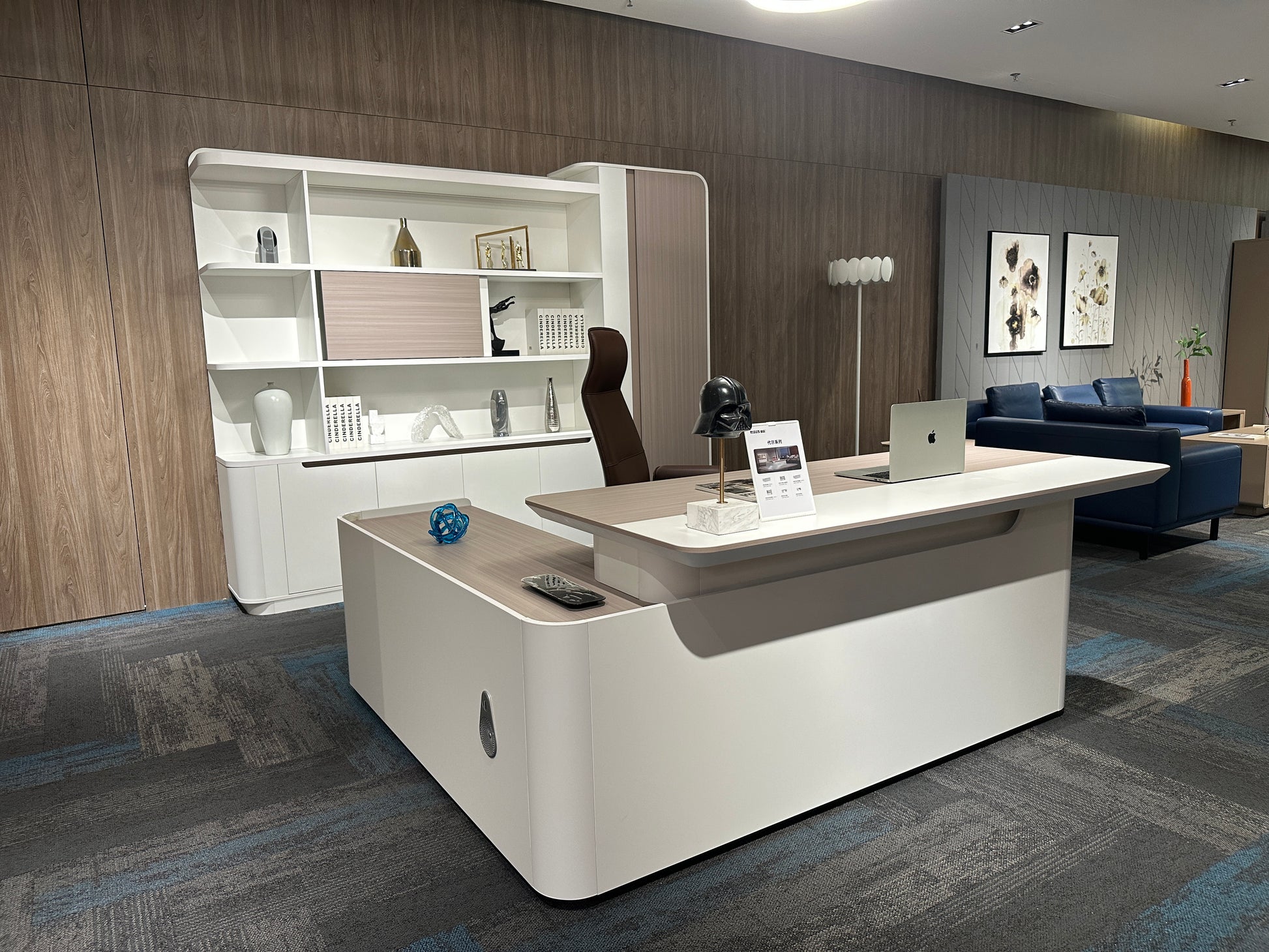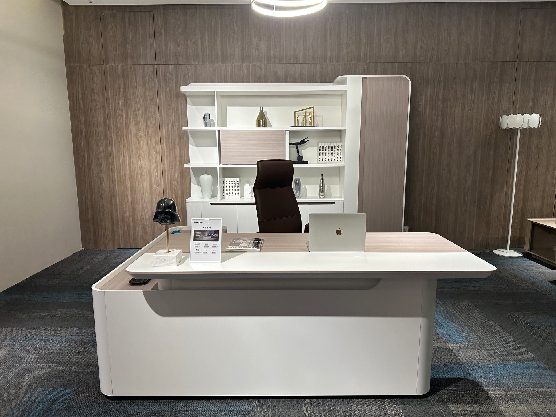 The Lunar Executive Desk is designed for modern professionals who value clean design, smart features, and a serene workspace. With its elegant Elm woodgrain and White finish, the Lunar range brings effortless sophistication to any executive setting.